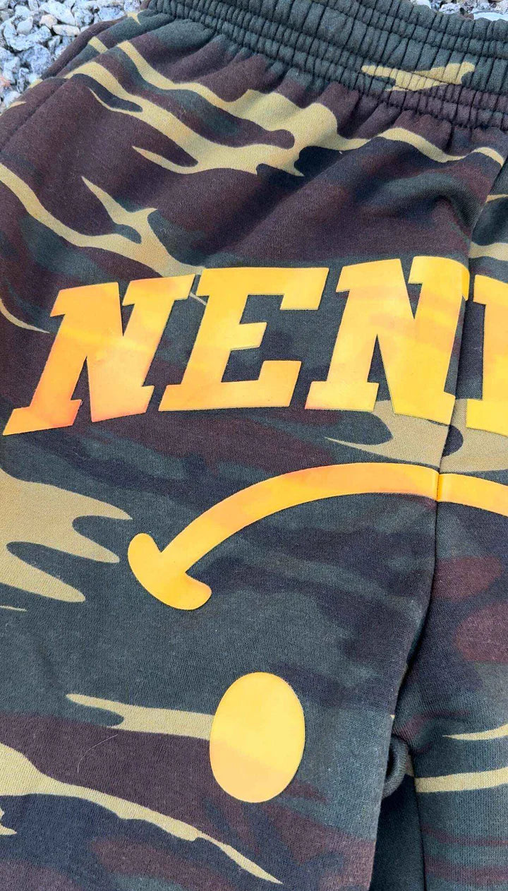 Bloody Camouflage Face Distressed Cotton Sweatpants Loose Fit Streetwear Fashion Camo